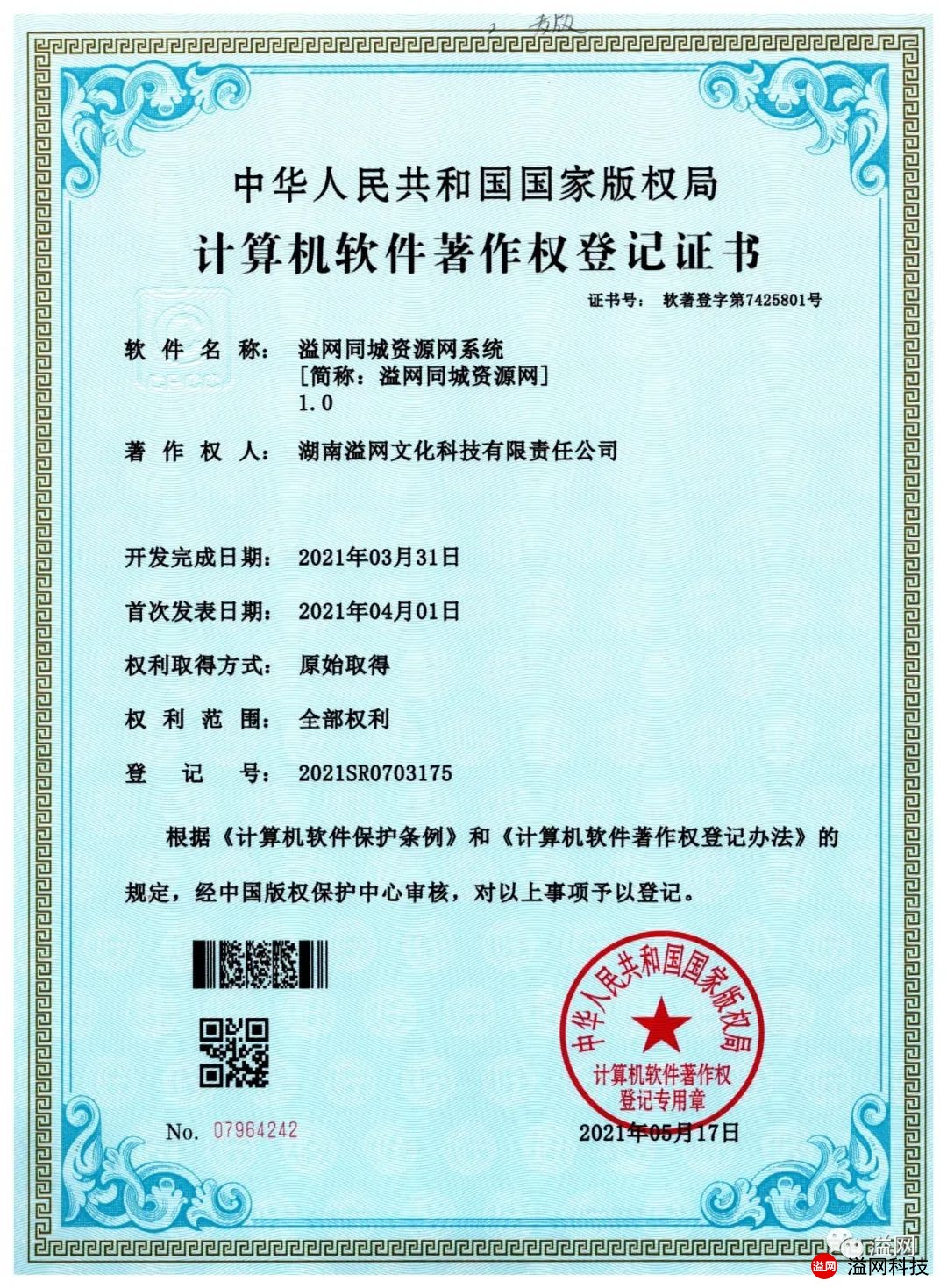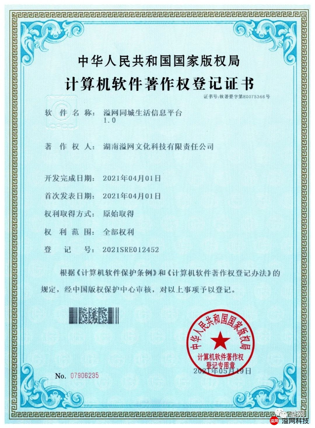 溢網(wǎng)科技第一批軟件著作通過國家版權局審批并登記